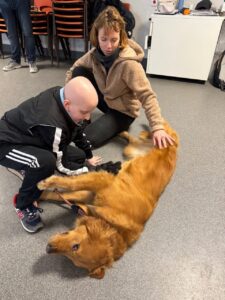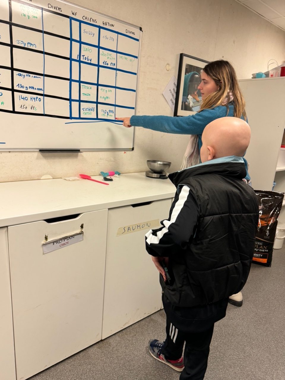 Maëva découvre les chiens guides d’aveugles au Centre Paul Corteville à Roncq. Elle peut les nourrir et les toiletter et effectuer une courte sortie avec Tao, son préféré !